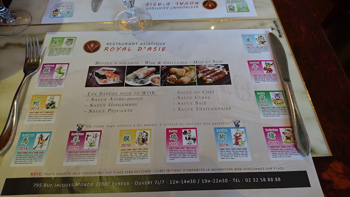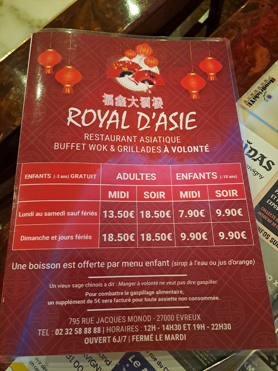 ROYAL D'ASIE Menu